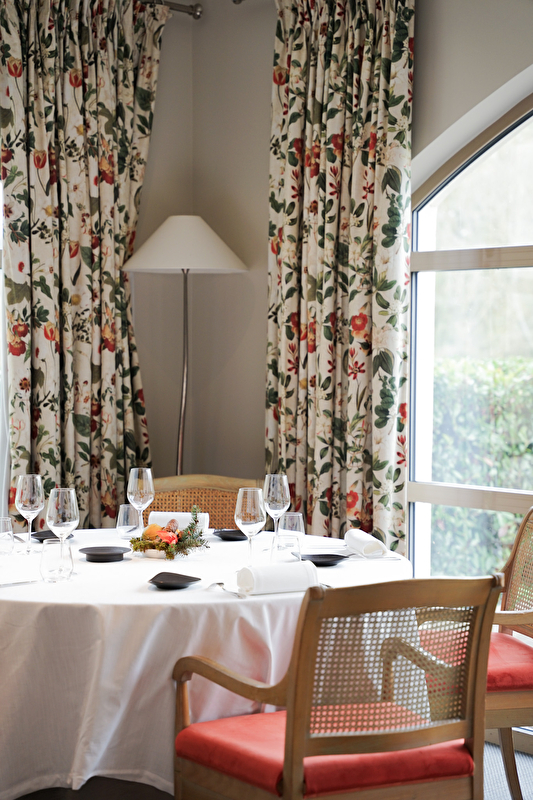 Au cœur du Château Sainte Sabine, se niche le restaurant gastronomique Lassey, ses tissus aux motifs botaniques qui encadrent la vue panoramique sur le parc, et son jeune Chef Alexandre Ziane.